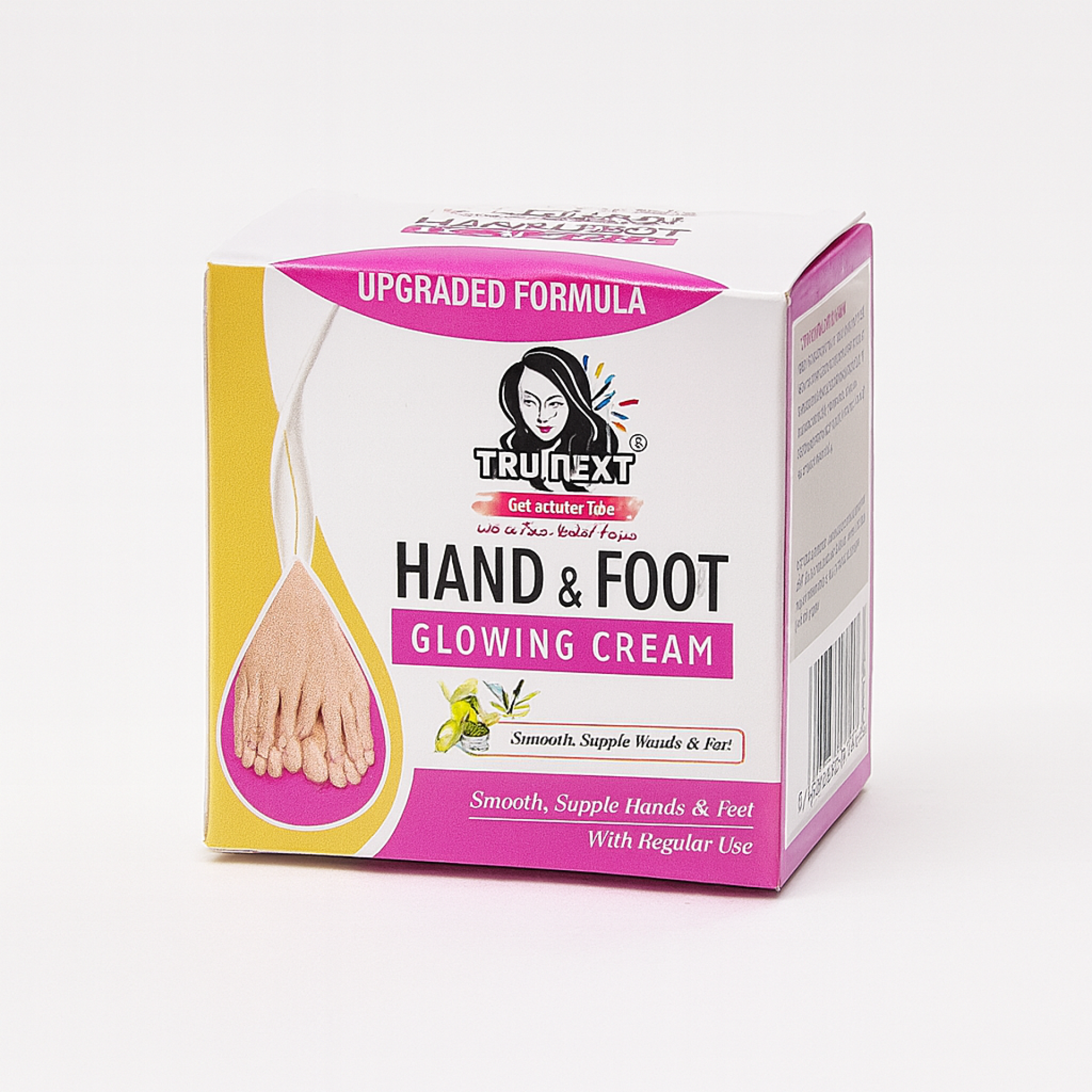 Pamper your skin with Tru Next Hand and Foot Glowing Cream, a rich, non-greasy formula infused with natural brightening extracts, vitamins, and moisturizing agents. This luxurious cream helps repair dryness, reduce dullness, and restore natural softness to rough hands and tired feet.